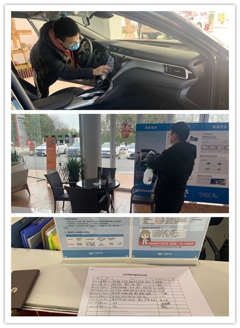 對(duì)黃易佳來說,消殺任務(wù)也是工作中的重中之重。公司領(lǐng)導(dǎo)一直密切關(guān)注疫情的發(fā)展,在疫情初期及時(shí)調(diào)整了工作重點(diǎn),為員工準(zhǔn)備了口罩、手套、消毒水、紅外體溫儀等防護(hù)用品。黃易佳和同事們每天嚴(yán)格佩戴防護(hù)設(shè)備,分早、中、晚三次進(jìn)行店內(nèi)全面消毒殺菌工作。他們?yōu)閬淼昕窜嚨目蛻暨M(jìn)行體溫測(cè)量,為沒有佩戴口罩的客戶免費(fèi)提供口罩,佩戴后方可進(jìn)店看車,并且按照社區(qū)的要求對(duì)每一位進(jìn)店客戶進(jìn)行登記。