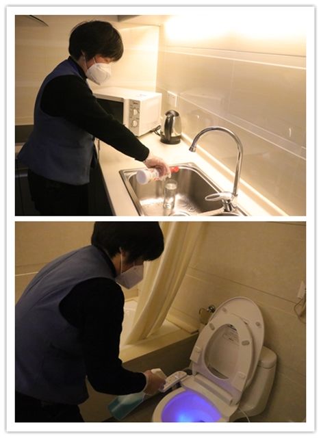 邱仲紅看在眼里急在心里,心想,如果自己輪休在家,萬一替班同事與客人溝通不順暢怎么辦?于是,她主動(dòng)申請(qǐng)上班,每天進(jìn)房后第一件事就是開窗通風(fēng),把房間打掃干凈。然后,按防疫程序,將門把手、遙控器、電話、五金件,就連快遞送入房間前都會(huì)用酒精逐一消毒,確保衛(wèi)生安全。