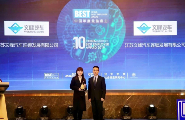重磅|文峰汽車獲得"2019中國(guó)年度最佳雇主南通十強(qiáng)"稱號(hào)