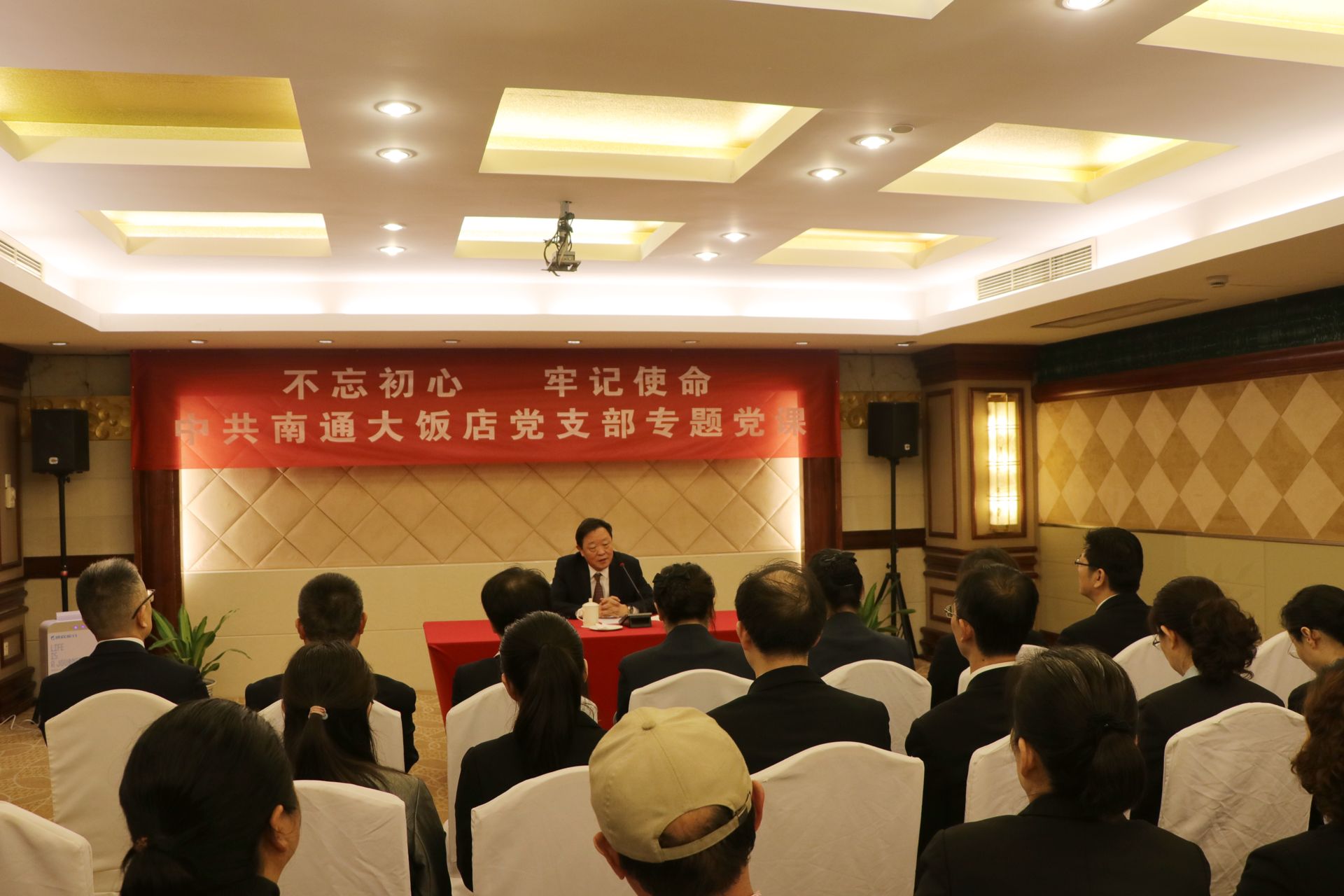 7月1日下午,南通大飯店黨支部在飯店黃河廳舉行專題黨課。飯店總經理、黨支部書記裴浩兵以“不忘初心、牢記使命”為主題,為全體黨員、入黨積極分子上了生動的一課。