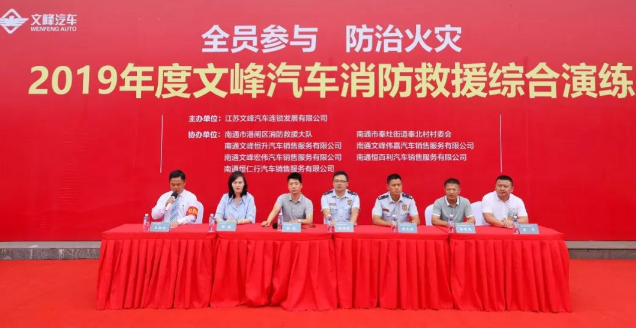 為增強(qiáng)員工的消防意識(shí),普及員工的消防知識(shí),提高應(yīng)急避險(xiǎn)、逃生自救的能力,6月19日,文峰汽車與南通市港閘區(qū)消防救援大隊(duì)、秦北村村委會(huì)聯(lián)合舉辦2019年度文峰汽車消防救援綜合演練,一汽大眾、廣汽豐田、東本恒升、別克、凱迪拉克全體員工共同參與。港閘區(qū)消防救援大隊(duì)大隊(duì)長(zhǎng)施海忠、中隊(duì)長(zhǎng)樊龍俊、秦北村村委會(huì)書記徐建成、安全員李平、文峰汽車總裁陳曉、文峰汽車副總經(jīng)理顧毅出席活動(dòng)。