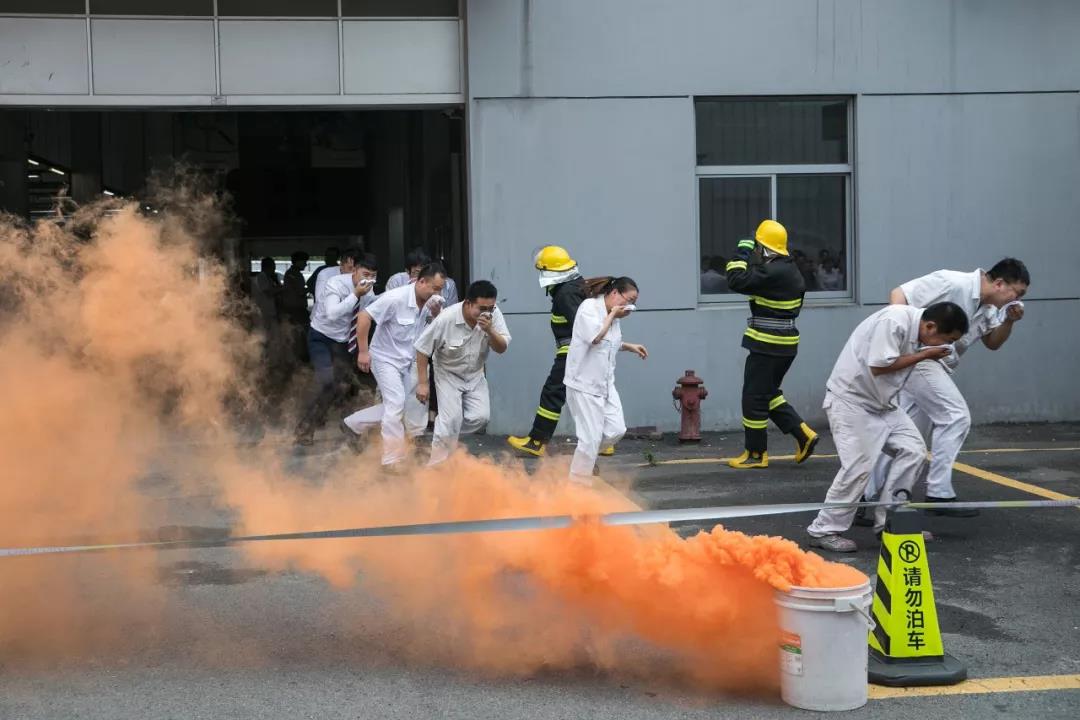消防安全知識(shí)培訓(xùn)結(jié)束后,相關(guān)人員來到模擬火災(zāi)發(fā)生點(diǎn)。隨著警報(bào)聲的拉響,實(shí)操演練正式拉開帷幕。相關(guān)人員在總指揮——廣汽豐田總經(jīng)理王祖安的帶領(lǐng)下,有序撤離火災(zāi)現(xiàn)場(chǎng)。