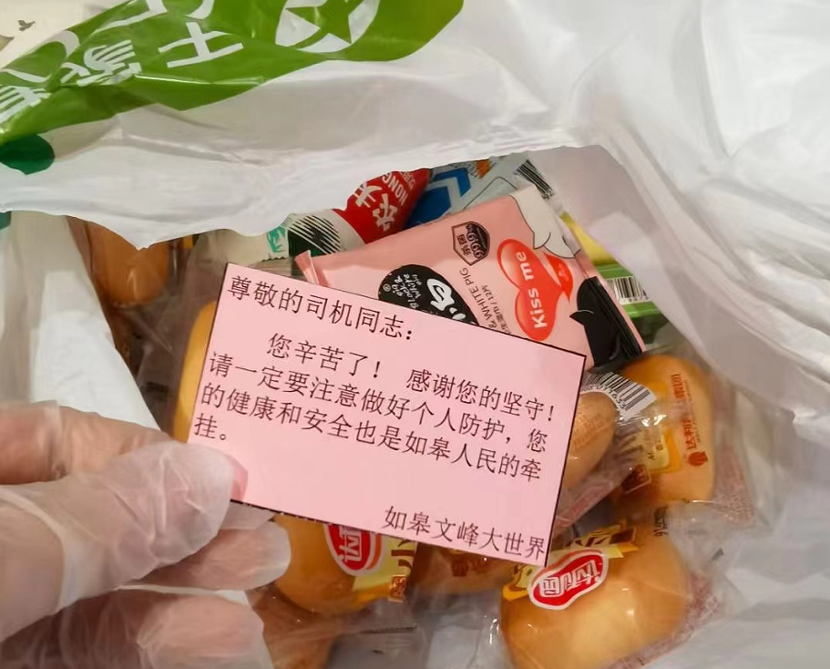 4月3日,如皋市委、市政府組織了第一批500份防疫物資,需要文峰千家惠如皋文峰店的協助,從接到指示到組織貨源,再打包裝車,如皋文峰店的員工迅速行動、全員協作,只用了6小時就順利交付了防疫物資。4月4日,他們再次接到第二批慰問物資的配貨任務,員工們不眠不休,同樣保質保量并及時完成了任務。