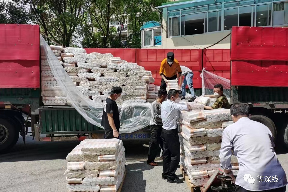那段時(shí)間,五人集體配貨,店長主要負(fù)責(zé)接單、廚師做飯配貨之余還要負(fù)責(zé)收銀,將貨款錄入系統(tǒng);保安則一直往返于超市所在的五樓與一樓之間,將打包好的貨物送到團(tuán)長手中。