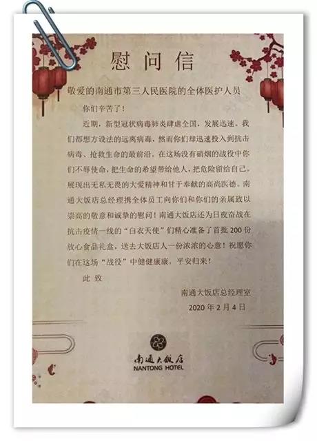 此次捐贈,除了文峰千家惠配送商品外,文峰集團旗下另外兩家星級飯店文峰飯店和南通大飯店也參與其中,他們每周準(zhǔn)備400份半成品食材,以解決兩家醫(yī)院一線醫(yī)護人員的后顧之憂。